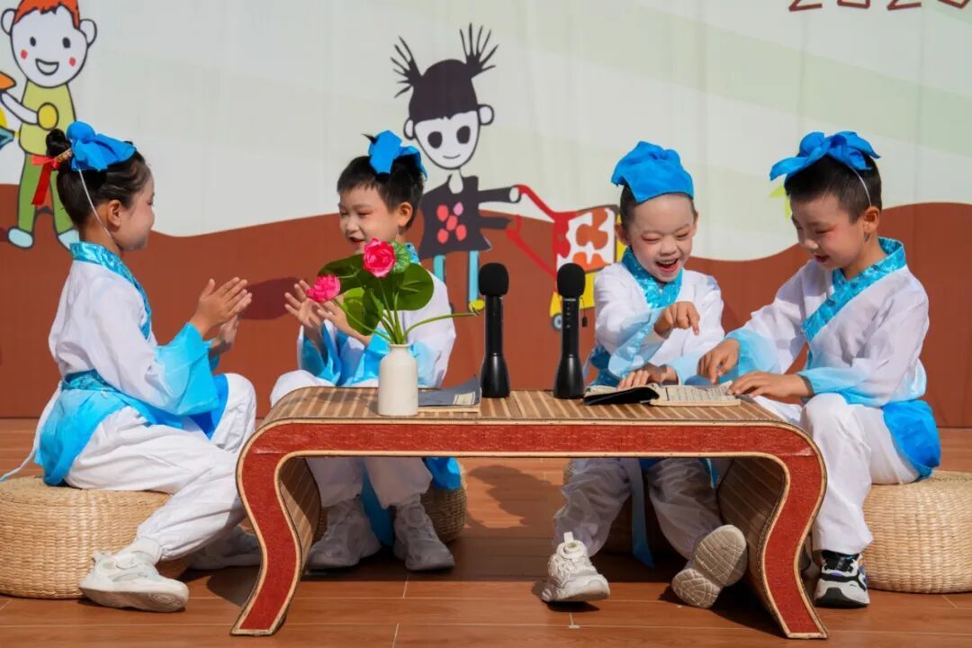 大家身着新中式服装,男孩们穿着对襟小褂,女孩们裙摆飘飘,传统服饰的雅致与春日的生机相映成趣。
