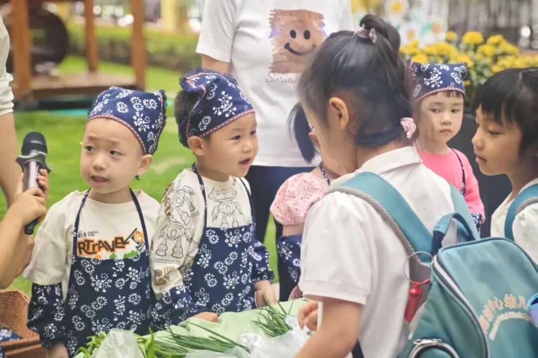 待到农作物收成,幼儿园还会组织蔬菜义卖活动,孩子们亲手把蔬菜采摘下来,摆摊吆喝叫卖。