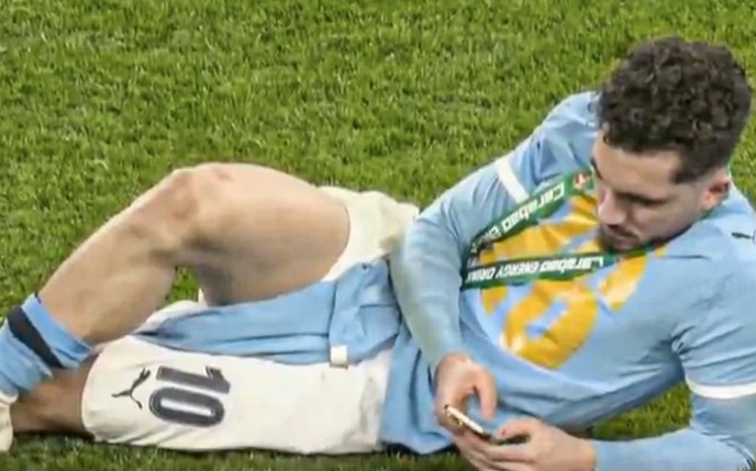 在今天凌晨进行的英联杯决赛中,曼城2-0击败阿森纳夺冠网上配资查询,赛后的照片可以看到,在颁奖典礼结束后,谢尔基在球场内躺着玩手机。
